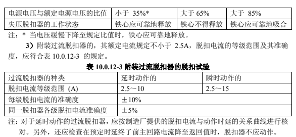 2)附裝失壓脫扣器的,其動作特性應(yīng)符合表 10.0.12-2 的規(guī)定;